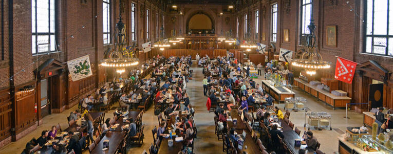 The dining hall is set up in stations with daily rotating meals for students. There are self serve stations and stations with a menu to allow for variety. All foods are ensured to be top quality, and healthy. There are multiple vegetarian/vegan options, and also gluten free options at every station. The snacks bar and drinks station are open 24/7, while all stations are open from 6am to 11pm.